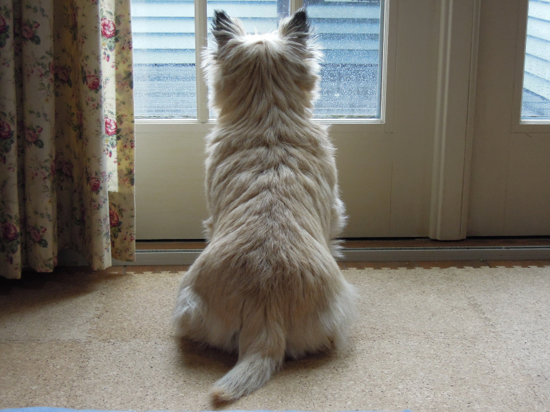 お外の雨とにらめっこ(笑)