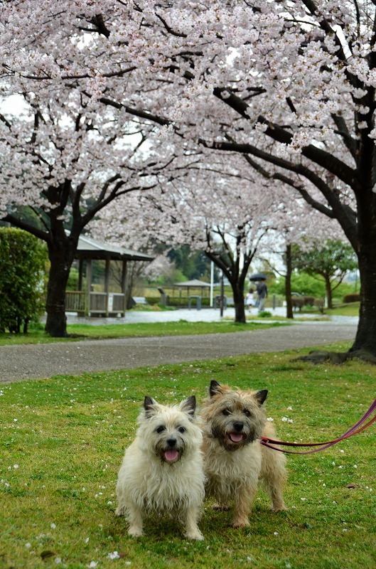 雨の合い間、ぱぱままらくみかりんでの桜散歩♪